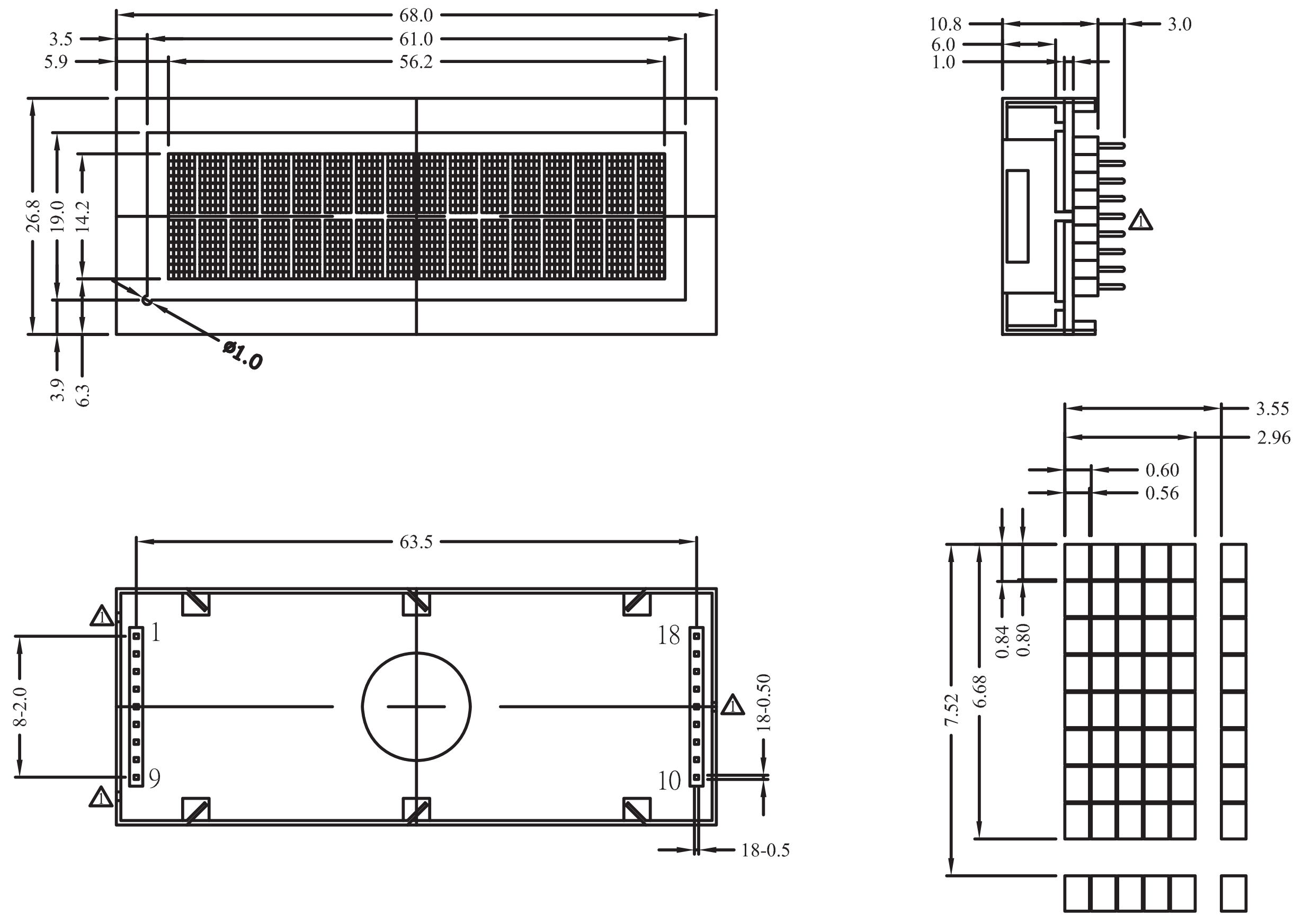 Module dimension of BC1602L is (68x26.8) mm and viewing area is (61x19) mm.
