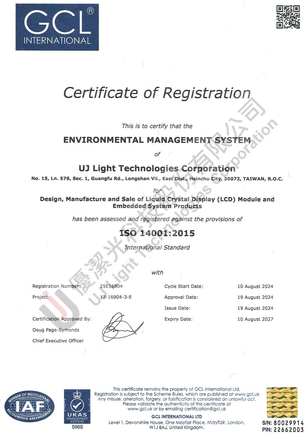 Our quality system is certificated by ISO 9001 / ISO 14001 . UJ light is United Kingdom Accreditation Service (UKAS) recognised for our certification, testing, inspection and calibration services.